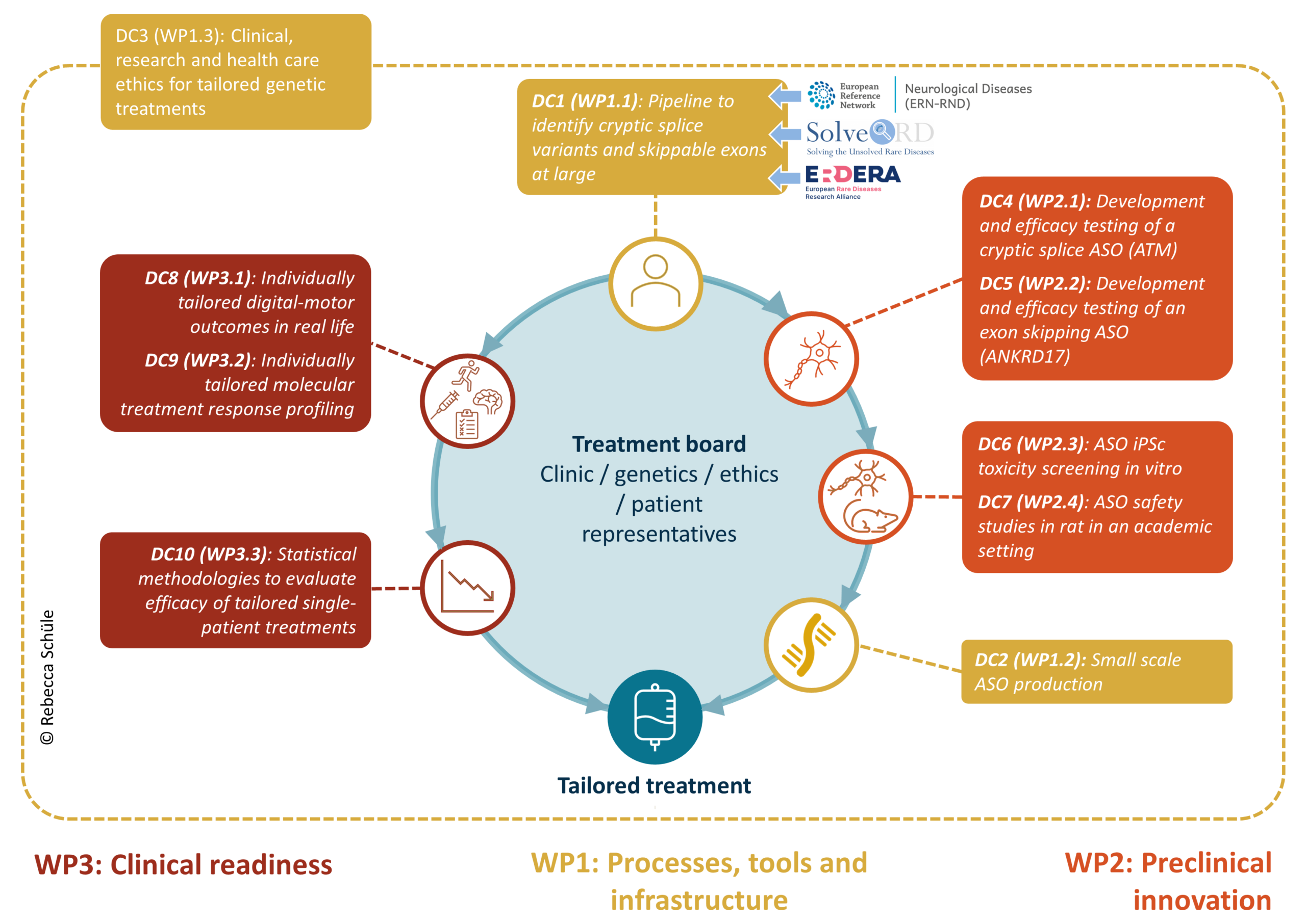 MMM provides a unique opportunity for doctoral candidates to be involved in building – and to receive training – in all core modules needed for tailored ASO treatment in Europe. This new scientific field requires a new generation of open-minded, technology-fluent and applications-oriented experts. MMM will help educate future drug development and translational experts in adopting and disseminating such a cross-specialty approach. Our idea for this innovative training network is built on our personal experience and understanding of the importance of single patient tailored genetic treatments in the years to come. The consortium consists of world-leading experts and partners with extended experience and relevant know-how in molecular biology, neurology, translational medicine, biochemistry, bioinformatics, philosophy, mathematics, regulatory science and engineering. Ultimately, we believe MMM will help provide tailored ASO treatments to nano-rare RND patients, patients that are nowadays excluded from benefiting from current medical breakthroughs.